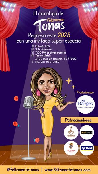 Creado e interpretado por Lizzette Díaz, periodista, autora y fundadora del movimiento Felizmente Tonas, este espectáculo de 50 minutos combina humor, introspección y mucha verdad para hablar, sin filtros, de lo que significa ser una mujer de más de 40 años en un mundo que idolatra la juventud pero olvida la sabiduría que llega con el tiempo.