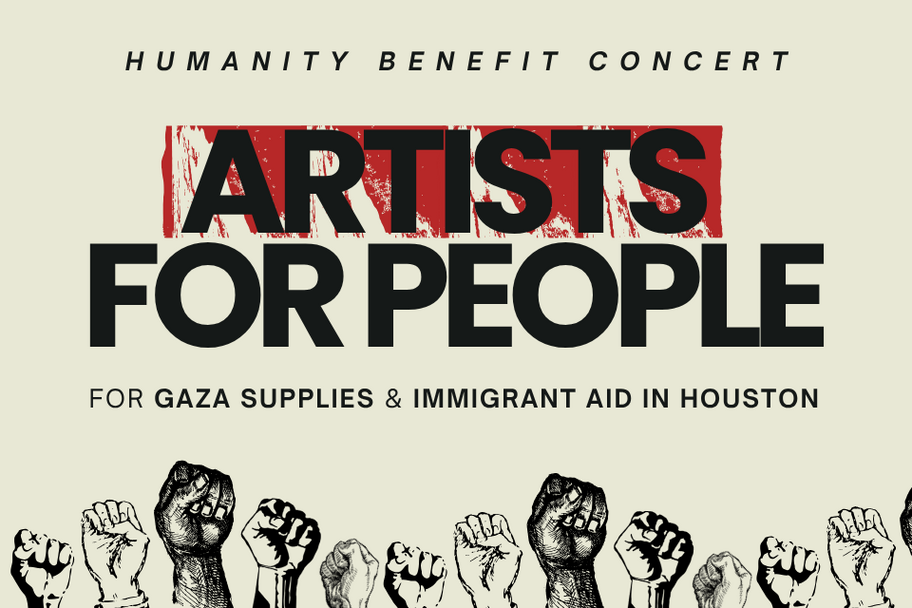 Our mission is to use art as a tool for collective action, resistance, and resource redistribution—channeling creativity toward care, survival, and social change.Through live performance, resource-sharing, and collective fundraising, Artists For People supports children and families in Gaza affected by conflict, as well as neighbors in Houston impacted by ICE raids and detentions.