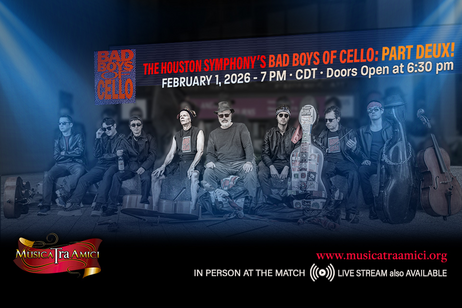 The Houston Symphony’s Bad Boys of Cello: Part Deux! Musica Tra AmiciThe Houston Symphony’s Bad Boys of Cello: Part Deux! February 1 - February 15